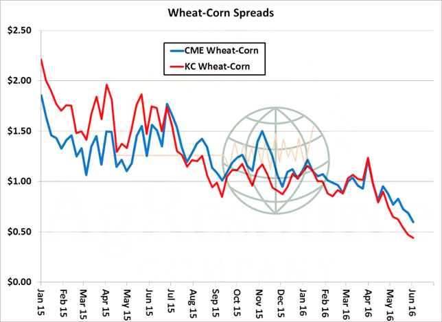 - Amid rising crop potential in the US and Canada, favorable rainfall in Eastern Australia, and even the potential for higher feed wheat supplies in W Europe, the global cash wheat market continues to work towards levels that attract higher feed use. We are sceptical that a dramatic shift in feed use or diets will occur in the US, but Asian importers will be increasingly eyeing wheat to replace corn, particularly following the recent rally in S American fob price levels. The graphic below charts spot wheat futures’ premium to corn. The looming N Hemisphere wheat harvest is expected to weigh on global corn prices into mid-summer.