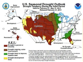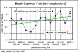- In Brazil’s top soybean producing state, Mato Grosso, there are still fears that the periods of intense drought which have been experienced may well jeopardise output. 4 to 8 inch moisture deficits and rainfall barely hitting 50% of normal were experienced throughout late 2012. Although January rains did increase significantly the conditions which followed in February were uneven with extended dry periods lasting 10 days or more. It must be borne in m ind that this is very unusual in the tropics where daily rains are the norm and the high daytime temperatures dry out topsoils rapidly. Late planted crops which are in their pod filling growth stage will be most affected.