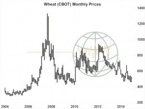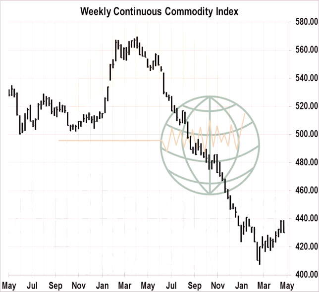 The CCI/CRB stabilised on the week with the US$ rising to a 13 year high against the Japanese Yen, while trading broadly sideways against the €uro and most other currencies. US Central Bank officials hinted at US rate normalisation later this year while the EU struggles to get a new Greece accord that would prevent default and their potential exodus from the community. If the US economy continues to gain traction, the US dollar/interest rates will both likely rise into yearend. The US June jobs report and China’s monthly PMI reading will hold great interest to traders this week. There are clear signs that the US economy is accelerating its growth rate while China’s economic outlook is slowing. Chinese real estate values are trying to stabilise, but future strong raw material demand is not foreseen. Our view on the CCI/CRB index remains bearish with intermediate lows expected by late summer/autumn.