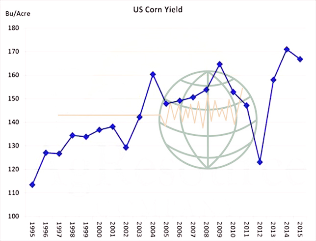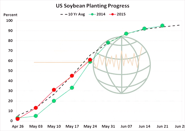 Corn futures ended down 9 cents, with July sitting just above its contract low posted during the 2014 harvest. NASS revealed the crop is rated at 74% good/excellent, a touch below trade expectations, but which our work suggests points toward excellent yield potential amid normal summer weather. Conditions are likely to improve in the coming weeks, as a warmer temperature pattern is established through the first half of June. Otherwise, as expected, the EPA has proposed substantially reducing mandated volumes for ethanol production/consumption. Nothing changes in the short run with ethanol supply/demand subject to market economics, but that the EPA has acknowledged the blend wall at 14.0 Bil Gal. New crop export interest remains meager. A more sideways pattern is expected in the next 3-4 weeks as the trade better assesses crop conditions and June/July weather forecasts, but should yield match last year harvest lows are pegged at $3.00- 3.20 basis Dec. We continue to be willing sellers of short covering rallies. More and more of the climate forecasting community are buying into a cool/wet Jun/Jul/August across the Midwest.