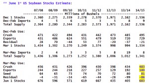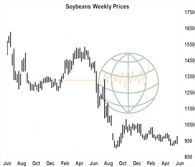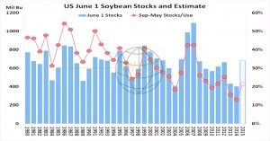 Soybean futures ended the week higher with fund short covering ahead of the end of month USDA reports being the main feature through the week. New crop soybeans fell to new contract lows which could not be sustained. This triggered short covering and a technical rally unfolded for the remainder of the week. The market is concerned that excessive rains in some areas of the country will reduce total acres. However, planting progress is expected to surpass 90% by Sunday, while crop condition ratings are expected to hold at a historically high level. Old crop June 1 stocks are projected at an 8 year high, and our view remains bearish. Saturday’s weather forecasts are much improved for the seeding states of KS and MO. A lower start is expected on Sunday with a resumption of the bear trend expected as US crushers added 2-3 weeks of cash inventory and have covered their crush needs into early to mid August. A cash lead decline is in the making.