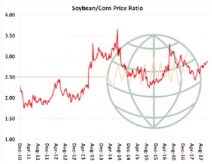 - Fund managers have been right to bet on long soybeans vs. corn (or wheat). The soybean/corn chart below reflects that soybeans have outperformed corn since late summer. Record large world soybean demand along with aggressive Argentine corn sales has helped the soy/corn ratio. In addition, if there is a La Niña weather problem in S American this winter, soy will continue to gain on corn with the ratio potentially reaching above 3:1. Plainly stated, US corn lacks a demand story in coming months. It is all about S America going forward.