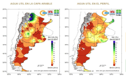 - Much of Argentina is parched, drier than a year ago. The map below, on the left, shows topsoil moisture while the chart to the right is subsoil. Notice that subsoil moisture is currently only 20- 40% of normal, meaning that upcoming rainfall will be highly important for crops during the last half of December.