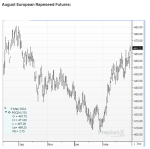 - Also of note, CONAB trimmed its 2024 Brazilian wheat production estimate to 9.1 million mt, vs. USDA’s 9.5 million. On balance, this adds 400-500,000 mt to Brazilian net wheat imports in 2024/25. 40% of Brazil’s wheat crop is grown in Rio Grande do Sul and is planted in June. Model guidance stays wet in RGDS into final days of May. Drier weather will be needed for timely wheat seeding there.